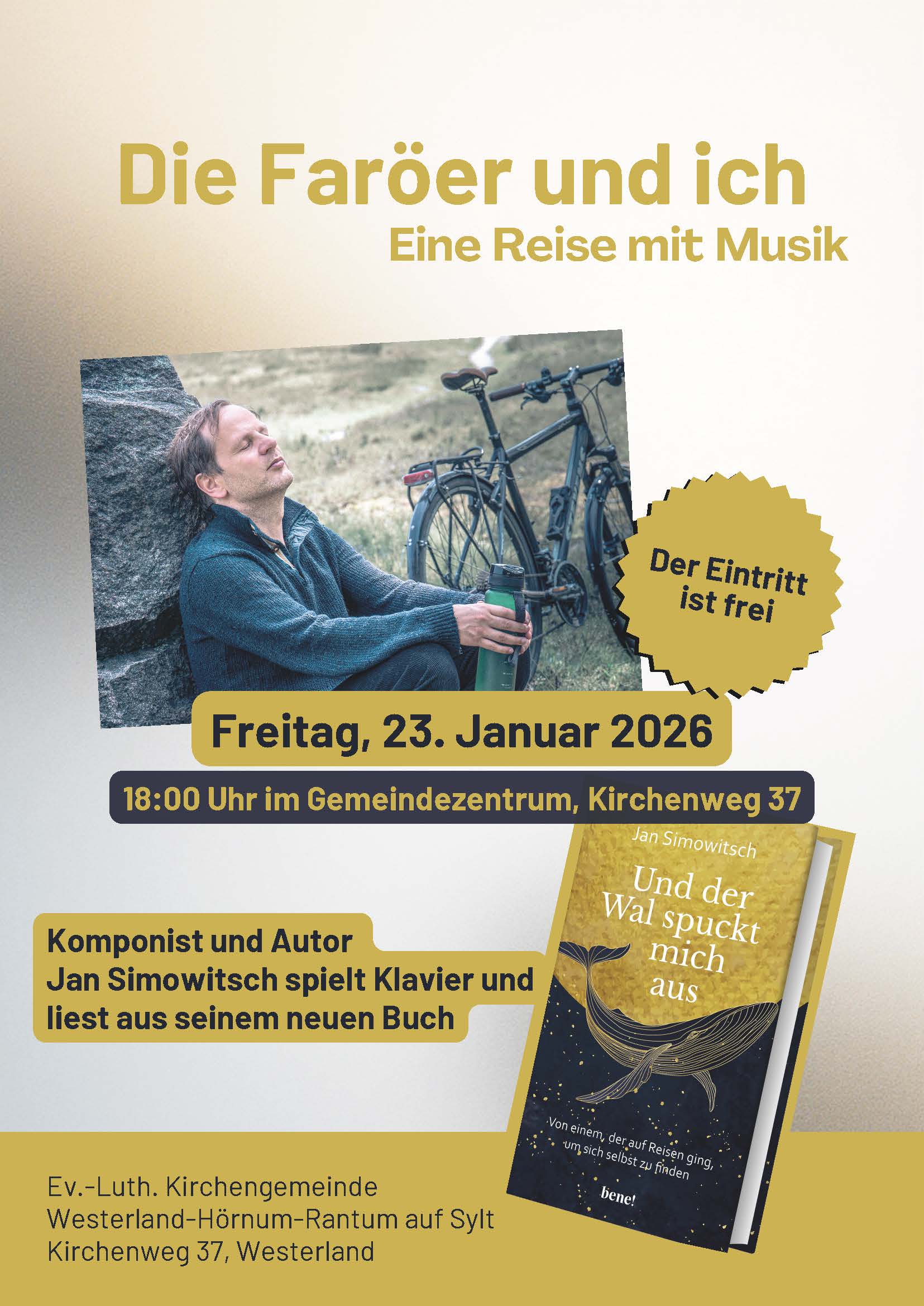 Wer wissen will, wie Jan aus dem Abenteuer wieder rausgekommen ist und was der schachspielende Steinbutt damit zu tun hat, darf sich freuen, Jan Simowitsch am Freitag, den 23. Januar 2026 im Gemeindesaal im Kirchenweg 37, Westerland zu erleben.