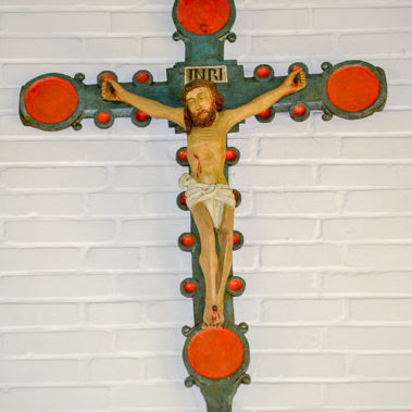 Über der Apsis findet sich ein Prozessionskreuz ebenfalls unbekannter Herkunft. Das Kreuz stammt etwa aus dem 14. Jh., der Christuskörper ist wohl etwas jünger. Dass das Kruzifix einmal für Prozessionen gedacht war, zeigt der Tragezapfen am unteren Ende. Auch dieses Stück dürfte aus der Vorgängerkirche nach St. Niels gekommen sein.