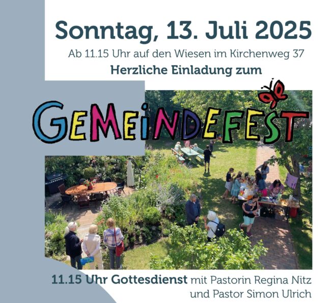 Am kommenden Sonntag, 13. Juli 2025 geht’s los: Die Kirche feiert! Auf der Wiese vor dem Gemeindehaus, Kirchenweg 37, startet der Tag mit einem Gottesdienst um 11.15 Uhr – die Kantorei wird singen, Pastorin Regina Nitz leitet den Gottesdienst und das Wetter bleibt trocken… und die Pavillons sind dicht. Das Wichtigste ist sicherlich, dass Nachbarn…