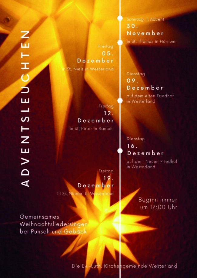 Ein Funke Mut – Das Friedenslicht aus Bethlehem hat bereits eine lange Reise hinter sich und wurde behutsam auf die Insel gebracht. Wir möchten es gemeinsam im Gottesdienst am 3. Advent, dem 14. Dezember, in der Dorfkirche St.. Niels empfangen. Von dort könnt ihr es abholen und weiterverteilen. Bringt Windlichter o.Ä. mit, dann könnt ihr…